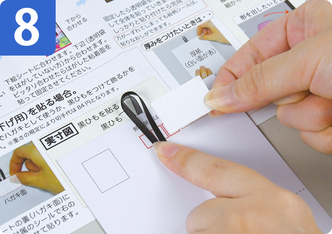 飾る場合は、裏面に飾りヒモをシールで貼って完成です。