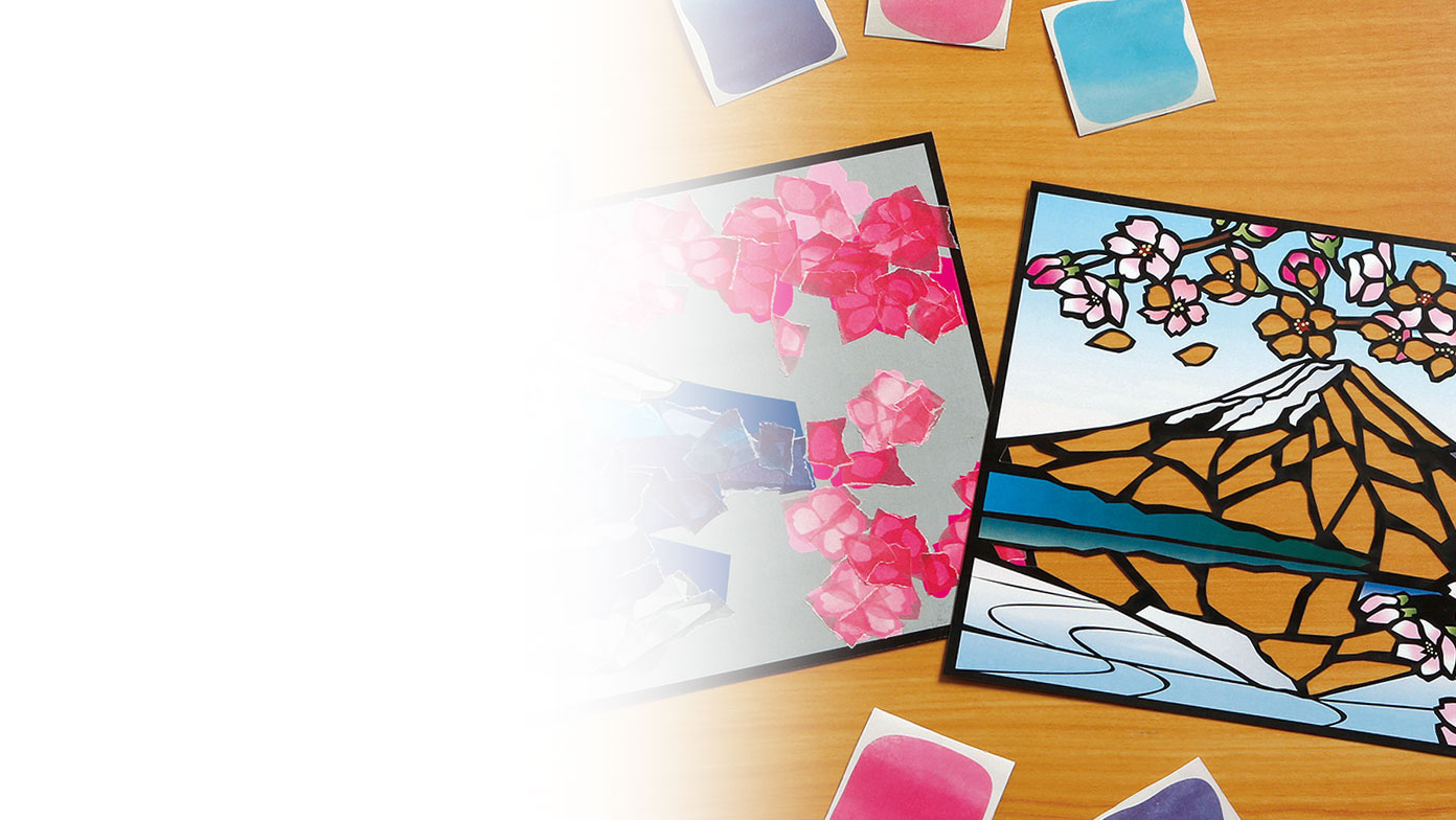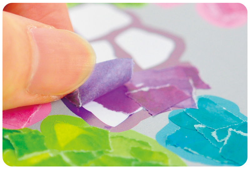 シールのちぎり方、貼り方で絵柄の風合いが変わる面白さも楽しめます。