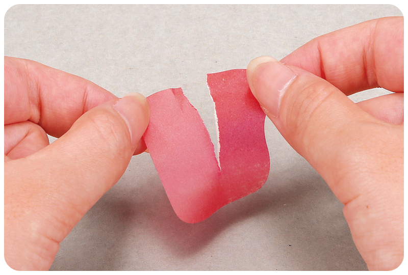 ティッシュをちぎる程度の弱い力があればできます。テーブルの角に貼れば、片手でもちぎれます。 -
