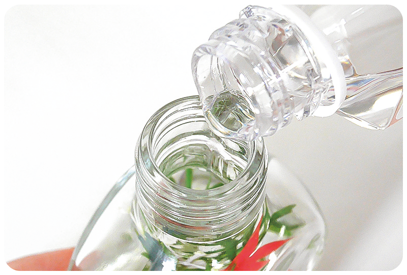 シンプルな工程和紙を切って、瓶に入れ、オイルを注ぐだけのシンプルな工程です。