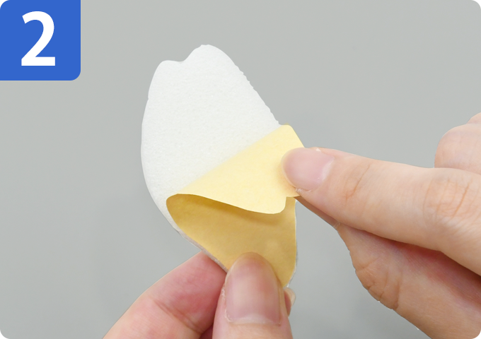 ウレタンの面は、裏紙をはがすと粘着のあるシール状になっています。そのまま布に貼れて便利です。 -