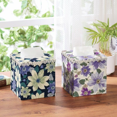 いろんな柄があってかわいいです。 ただ、作るときに、ティッシュを、入れる箱にうっかり布を貼る方がいるので、 ボール台紙に布を張るよう目印をつけた方がいいかも