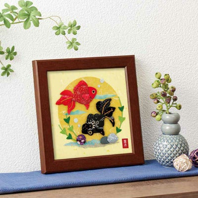 まず、可愛いデザインに惹かれました。金魚というものは初めて作りました。 尾びれのカーブや、水草の丸みを上手く作れるか少し不安でしたが、思いのほか綺麗に仕上がりました。 家族にも好評です。 今までは額無しで飾っていましたが、どうしても紫外線で台紙の色が飛んでしまうので、次回からは額に入れたいと思います。 夏の風物詩を飾るのを家族も楽しみに待っております。