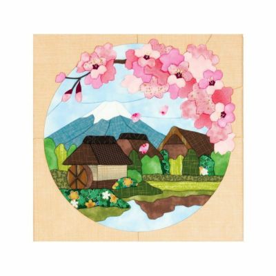 池から上に向かって進めていきました。 桜を始めてからこれはレベル4でもいいかもしれないと思うようになりました。 桜の花びらの先のくびれをきめ込むのに苦労しました。 へこみがないと梅の花になってしまうので。 コツは最初に花びらの先のくびれをきめ込んでからまわりを伸ばさないよう気を付けながらきめ込んでいけばきれいなへこみができるようです。 水車の棒は3本目は心持ち長めにしておくとぴったりです。(3本重ねて貼るので) 水車の下のお花の生垣がとても素敵な布地で一目ぼれして入手した位です。 来春まで待ちきれないので、さっそく部屋に飾りました。(笑)