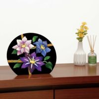 クレマチスは、大柄な割に繊細さを求められるので、今まで以上に生地の濃淡や見本通りの組み方に気を使いました。 お蔭で、全体の濃淡はもちろん、台座に貼った時も、とても良く仕上がりました。 初夏に玄関に飾るのが楽しみです。 -
