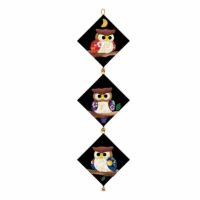 三連タペストリーは初めて作ったのですが、サイズと黒い台紙に浮かび上がる感じが素敵な作品でした。何よりフクロウが可愛らしいのに子供っぽくなくて飾りやすいです。小さな作品なので時間があまりかからないのもよいです。季節の花など他の三連タペストリーも作りたくなりました。 -