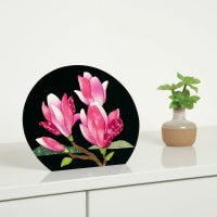 壁に掛けて楽しめるし置くこともできるのがいいですね シリーズで揃えました 昨年、今年と花見出来なかったけれど 毎日、夜桜見れてよかった